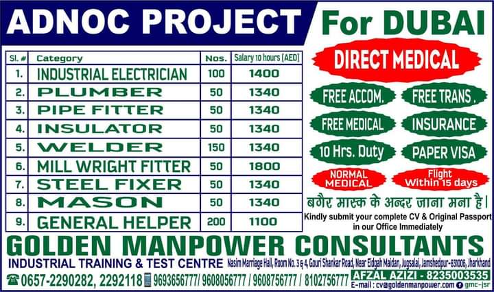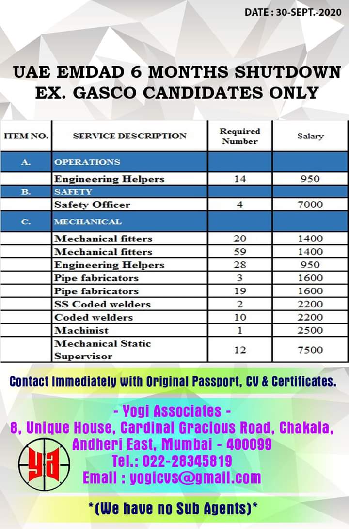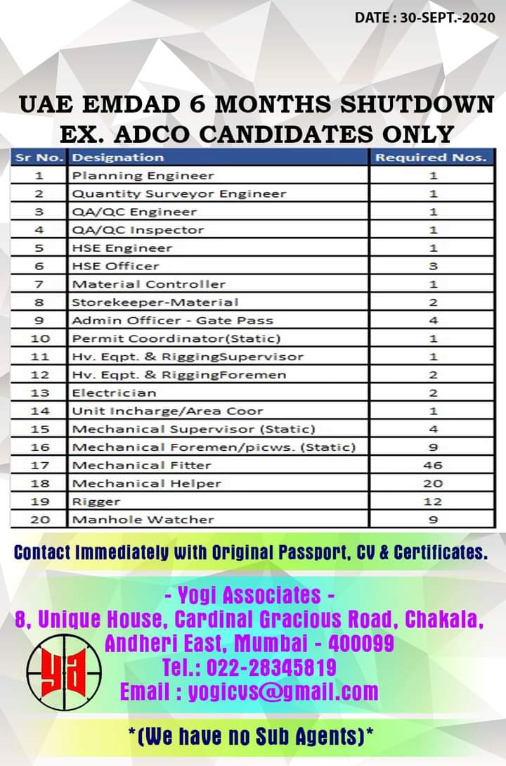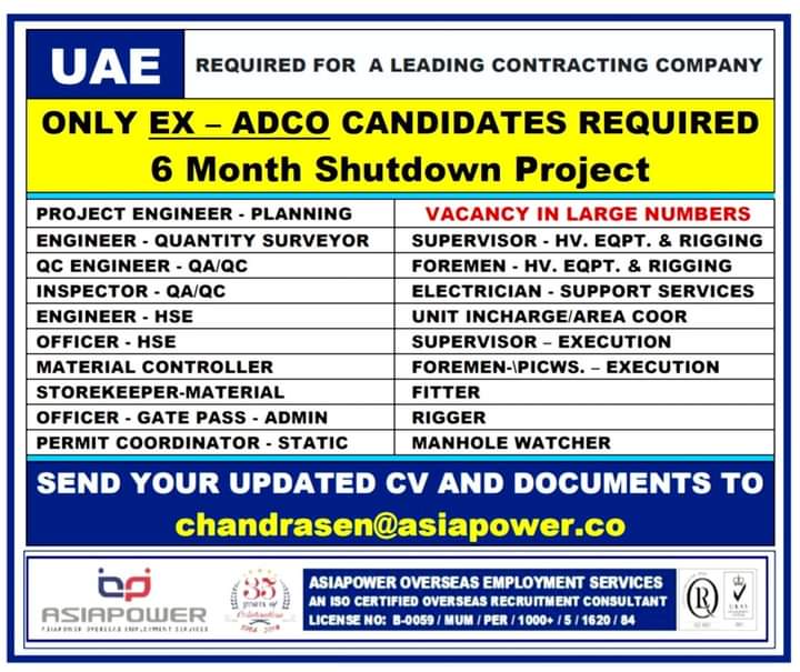 Jobs in UAE, Only ex – ADCO candidates can apply