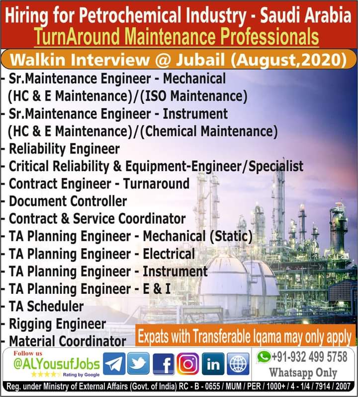 Engineer – Instrument (HC & E Maintenance) / (Chemical Maintenance) - Reliability