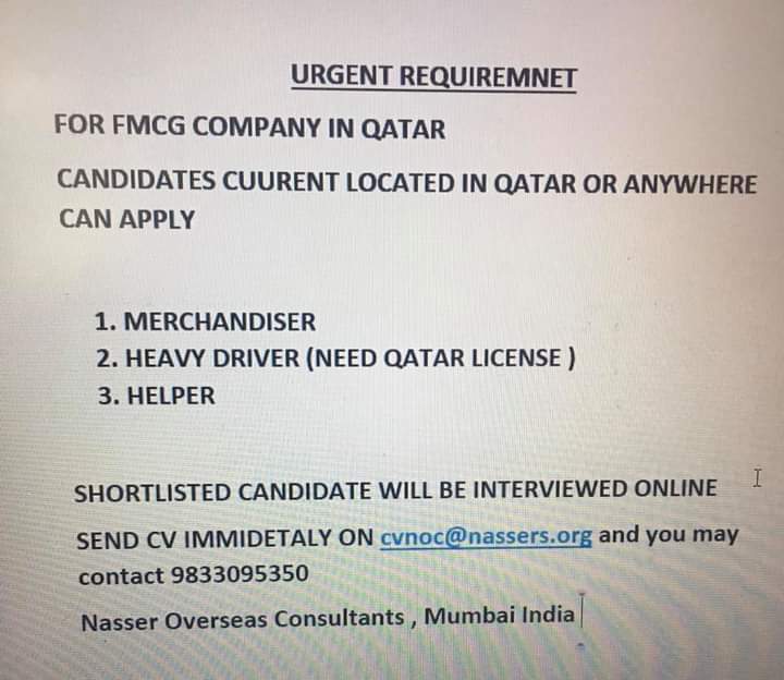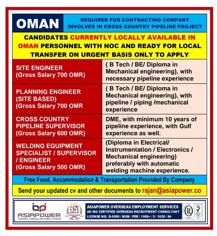 Jobs in Saudi Arabia, Oman, Bahrain, Qatar, Europe, India.