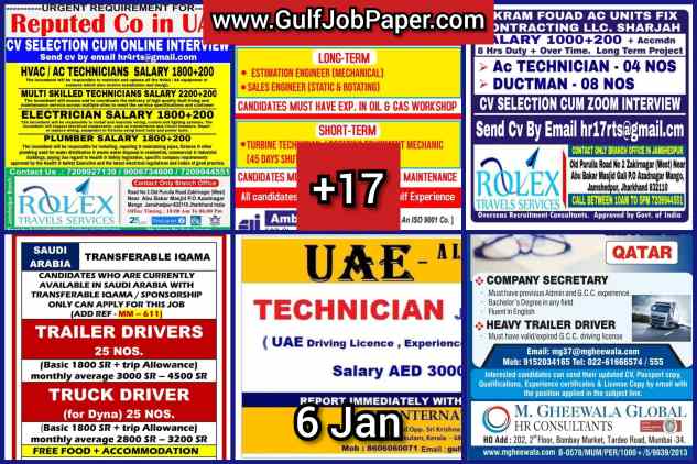 Jobs in Saudi Arabia, Oman, Qatar, UAE for various positions are mentioned below.