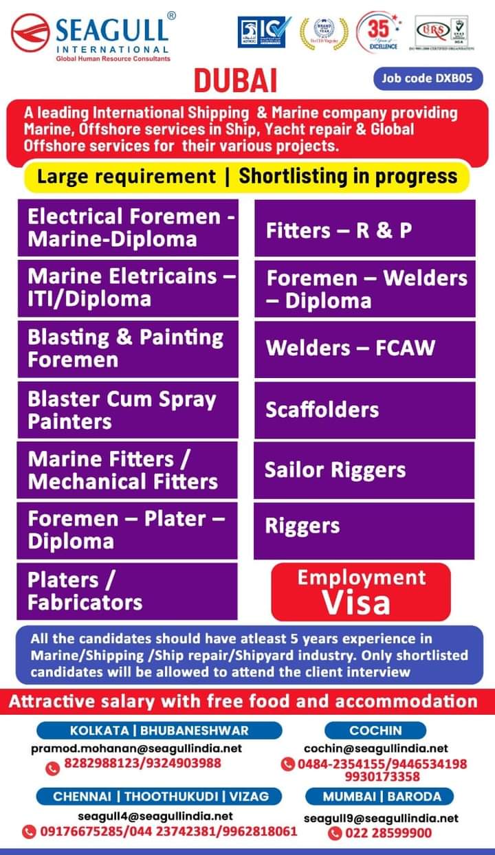 - Marine Electricians — ITI/Diploma