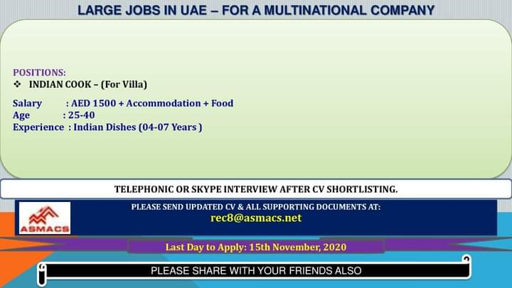 Jobs in Dubai, Candidates must available in UAE