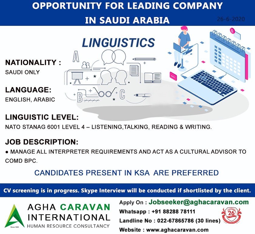 Requirement for a leading company in Qatar, candidate must available in Qatar can apply only.