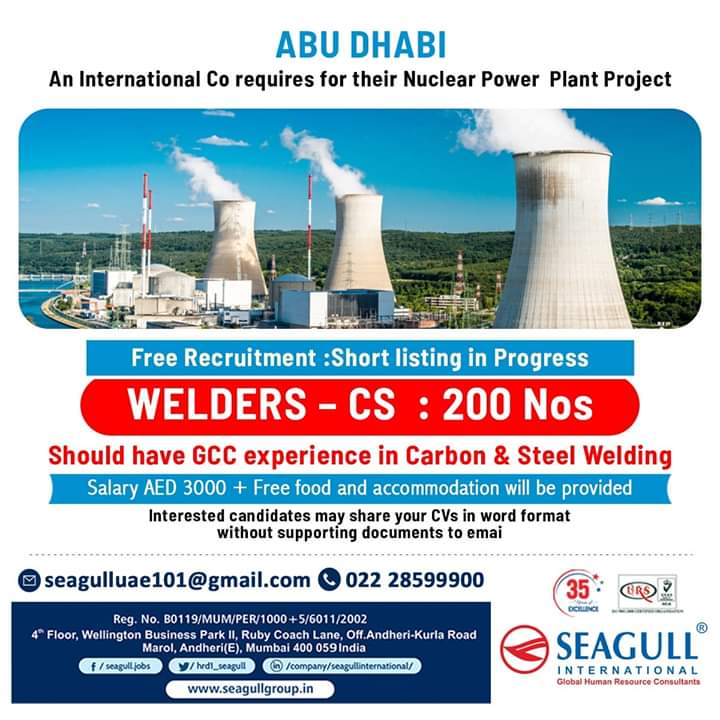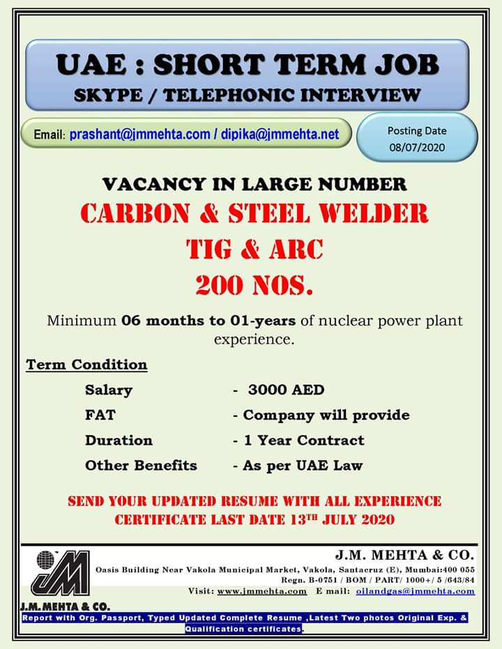Candidates should have Gulf experience in carbon and steel welding.