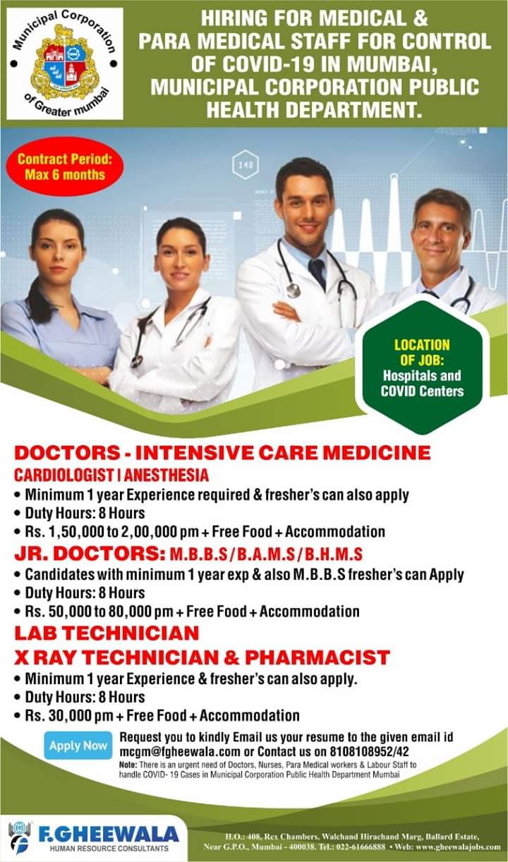 Hiring for medical and paramedical staff in Mumbai.