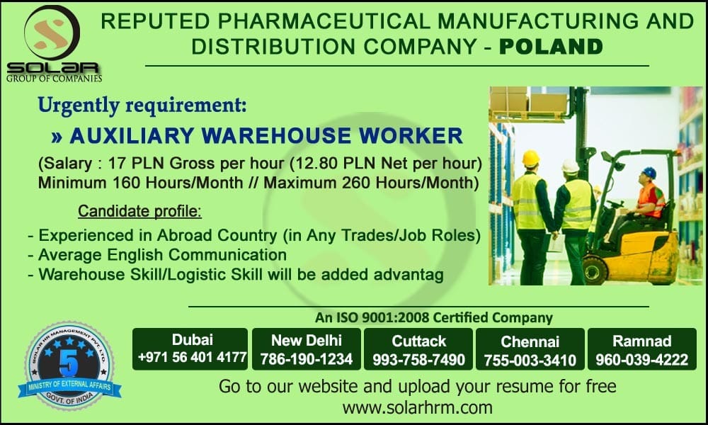 Requirement for a reputed Pharma medical manufacturing and distribution company in Poland