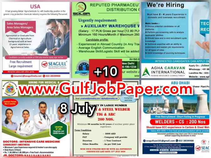 Gulf Overseas Jobs in various Gulf Countries.