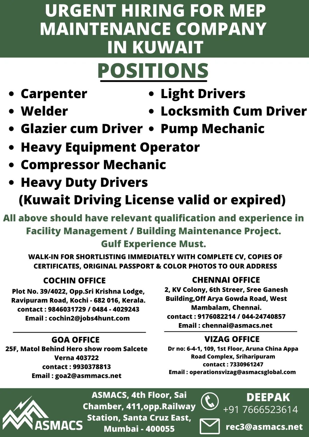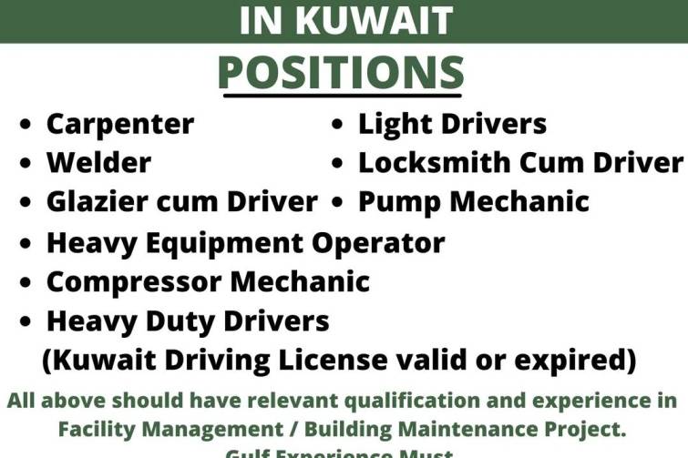 - Heavy Duty Drivers (Kuwait Driving License valid or expired)