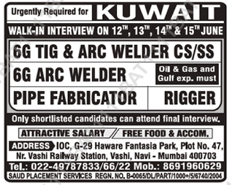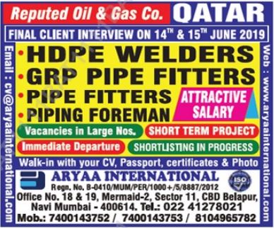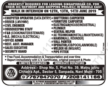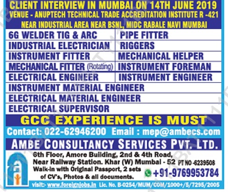 Gulf Jobs Interviews In Mumbai on 14 June 2019 in Different Offices.