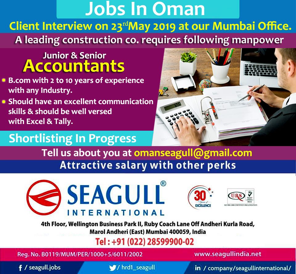 Gulf Jobs Interviews In Mumbai on 23 May 2019 in Different Offices.