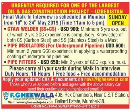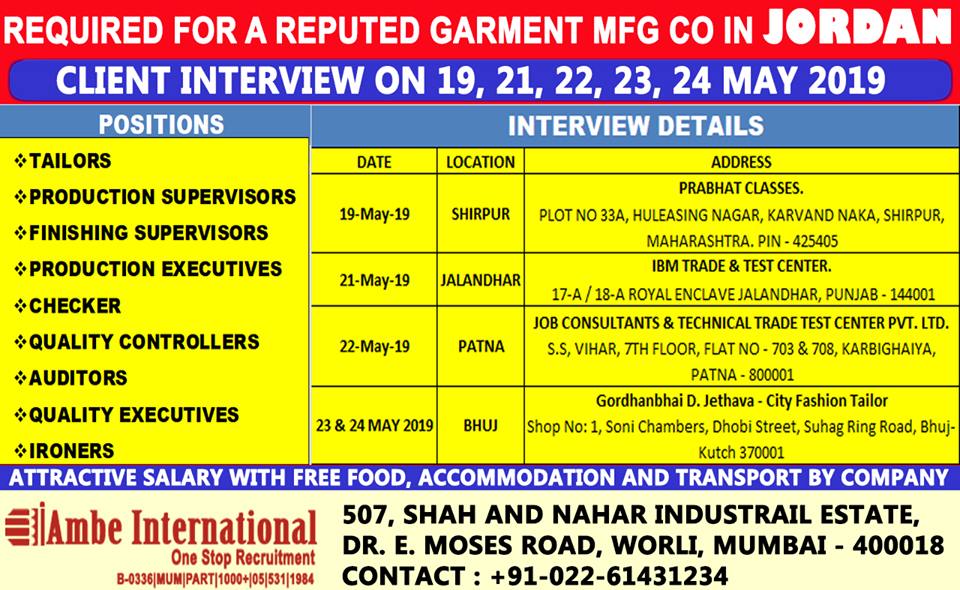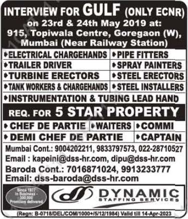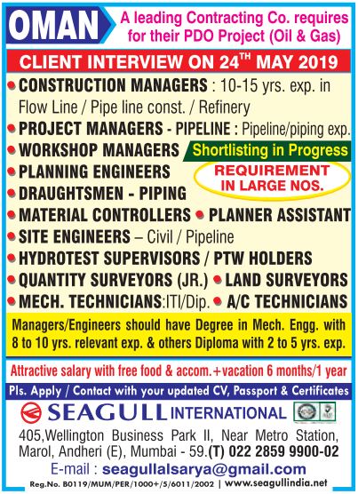 Gulf Jobs Interviews In Mumbai on 24 May 2019 in Different Offices.