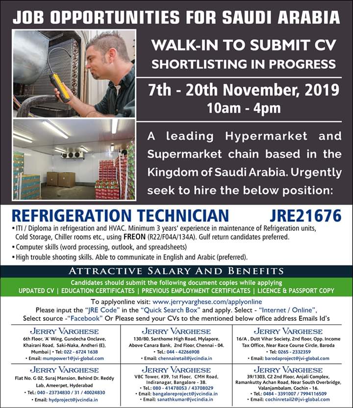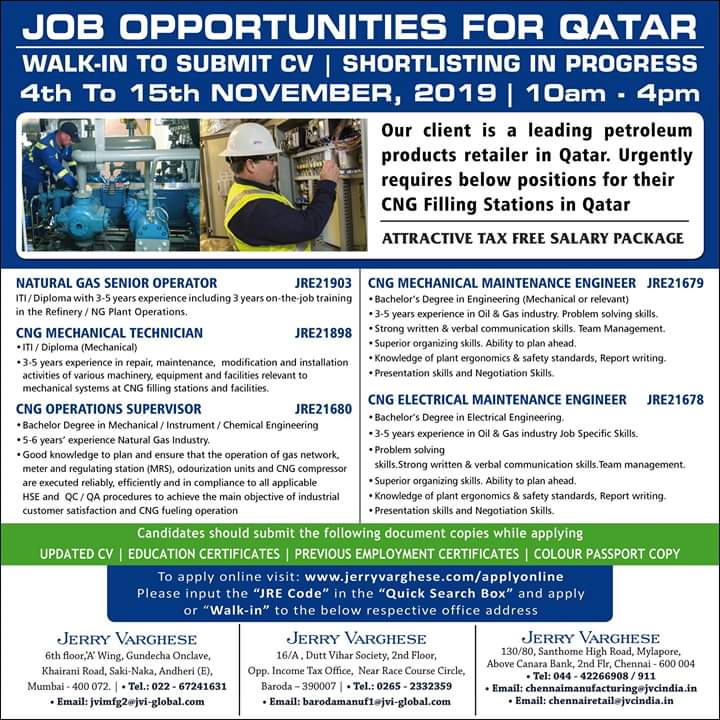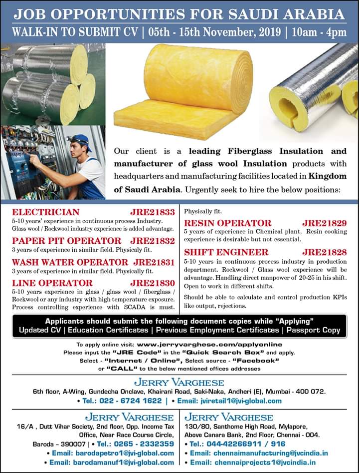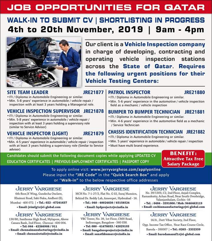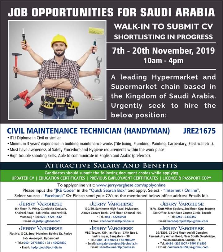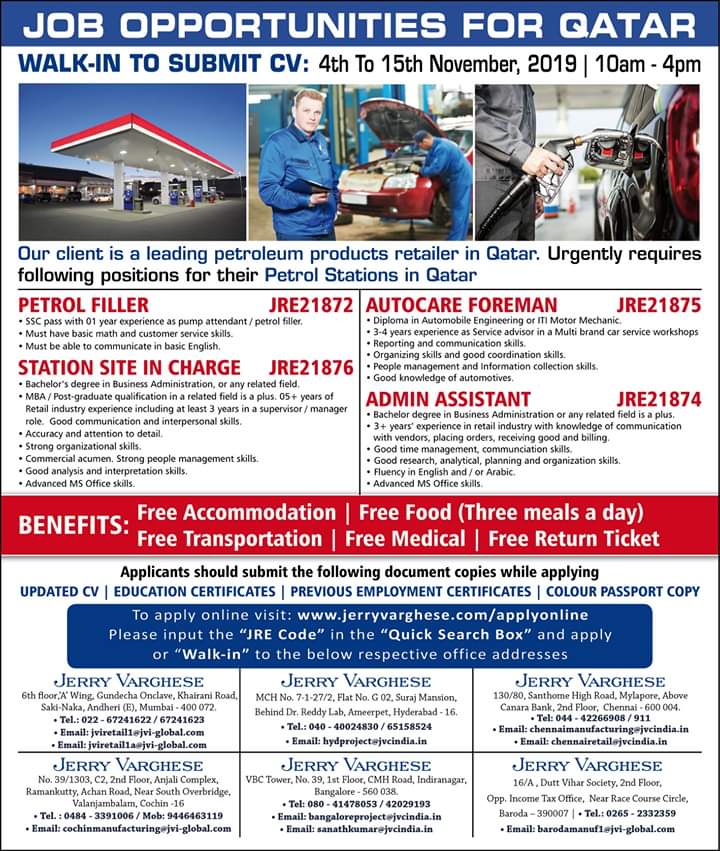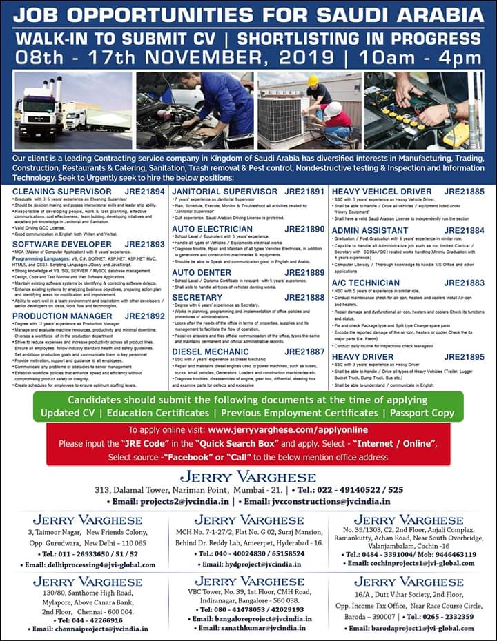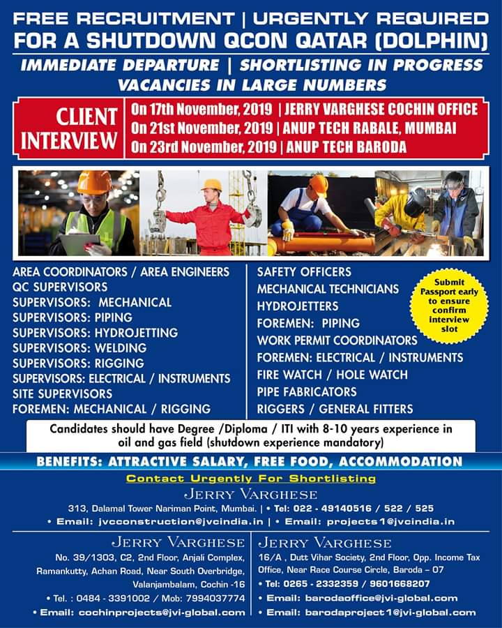 Jerry Varghese is one of the best consultancy in Mumbai. This consultancy is trusted and do genuine work. Upcoming gulf jobs interview in our office areavailable below. Various vacancies with various criteria are mentioned in every image.