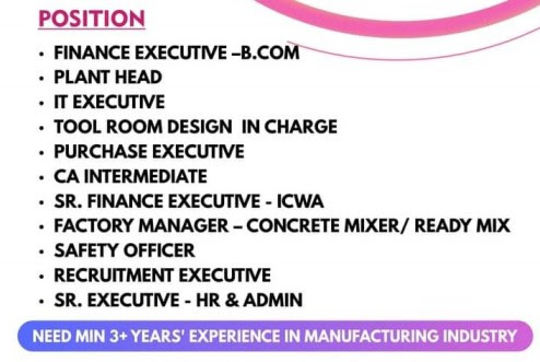 - Factory Manager – Concrete Mixer/ Ready Mix