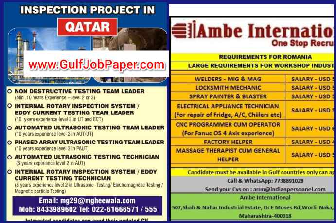 - Electrical Appliance Technician (For repair of Fridge, A/C,