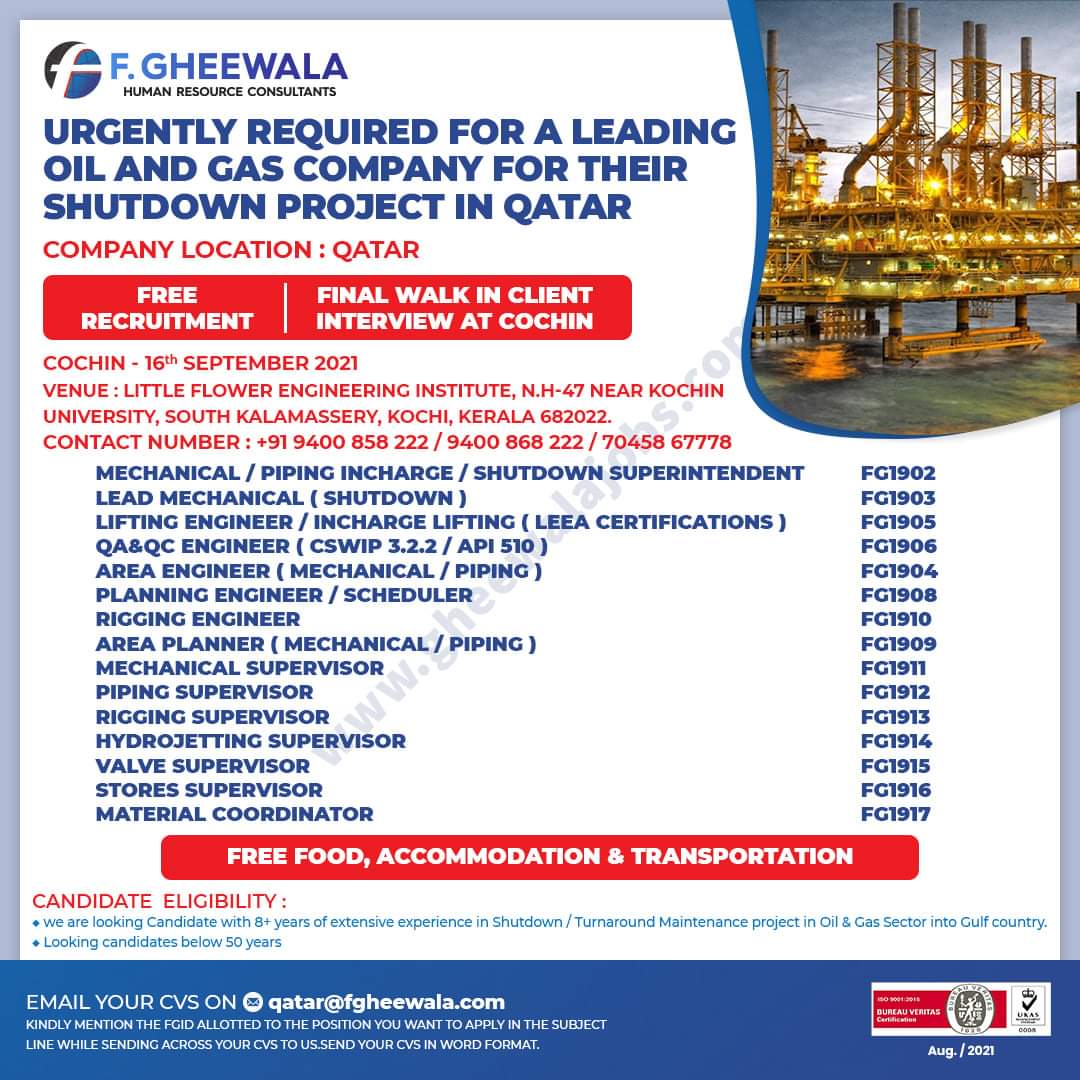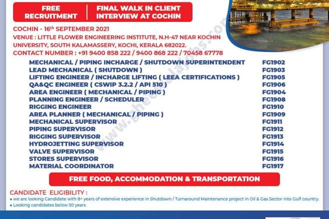 • Mechanical / Piping Incharge / Shutdown Superintendent