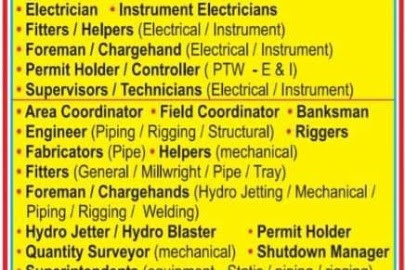 - Foreman / Chargehands (Hydro Jetting / Mechanical / Piping /