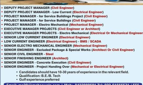 - Project Manager – Electro Mechanical (Mechanical Engineer)