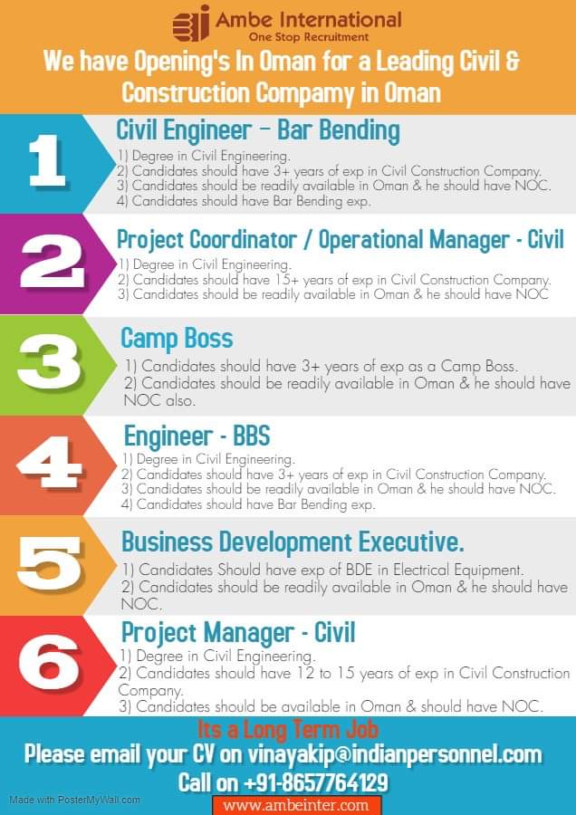Note: candidate must should be available in Oman and should have NOC from last company to apply below positions.