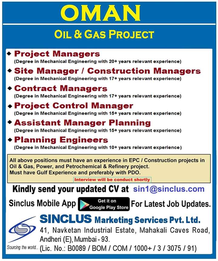 Sinclus is one of the India’s fastest growing recruitment consultancy. There are various vacancies available in our office for Gulf countries.