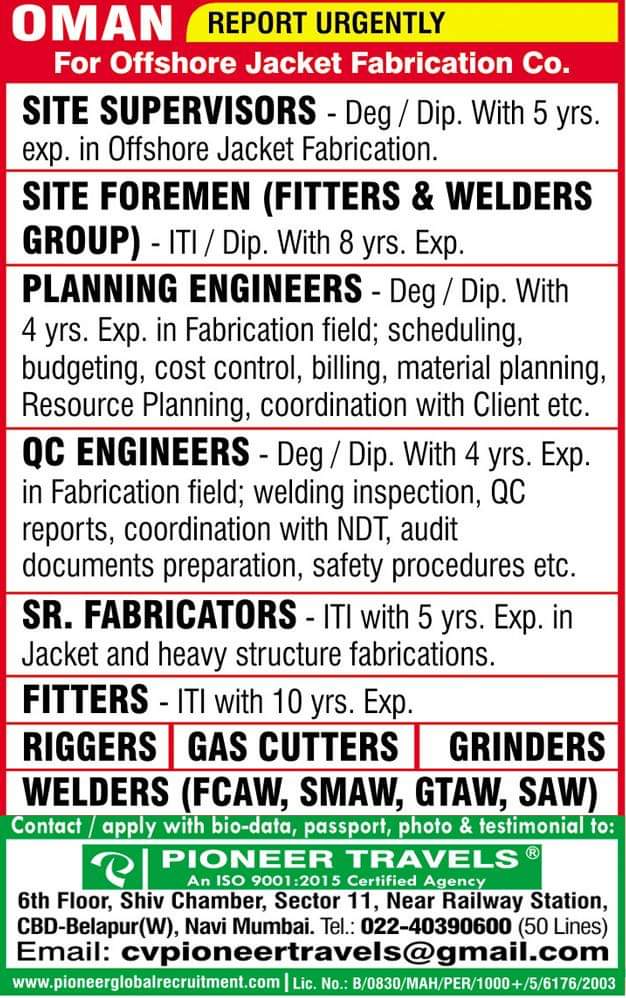 Requirements available in our office is mentioned below in image, If you are matching candidate by condition mentioned in image, You can come our office with original Passport with your CV to Shortlist yourself before Interview, Without Shortlisting process, No Interview will conduct on same date.