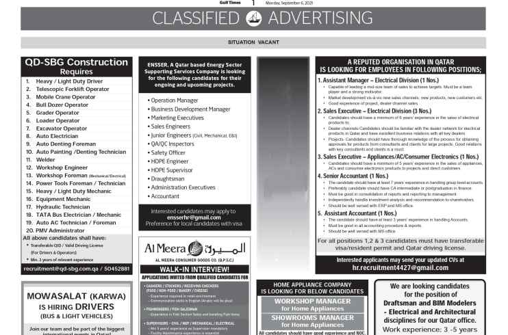 HomeQatar JobsQatar Classified Jobs~6 SeptemberQatar JobsQatar Classified Jobs~6 SeptemberBy Gulf JobSeptember 6, 20210ShareFacebookWhatsApp WhatsApp Group Join WhatsApp Table of contents [hide]Classified JobsClassified JobsOnly for those candidates who are currently available in Qatar can ApplyClick Here To Download File Size: 1 MB Click Here To View WhatsApp Group Join WhatsApp Previous articleGulf Overseas Jobs~5 SeptemberNext articleJobs in QatarGulf Job