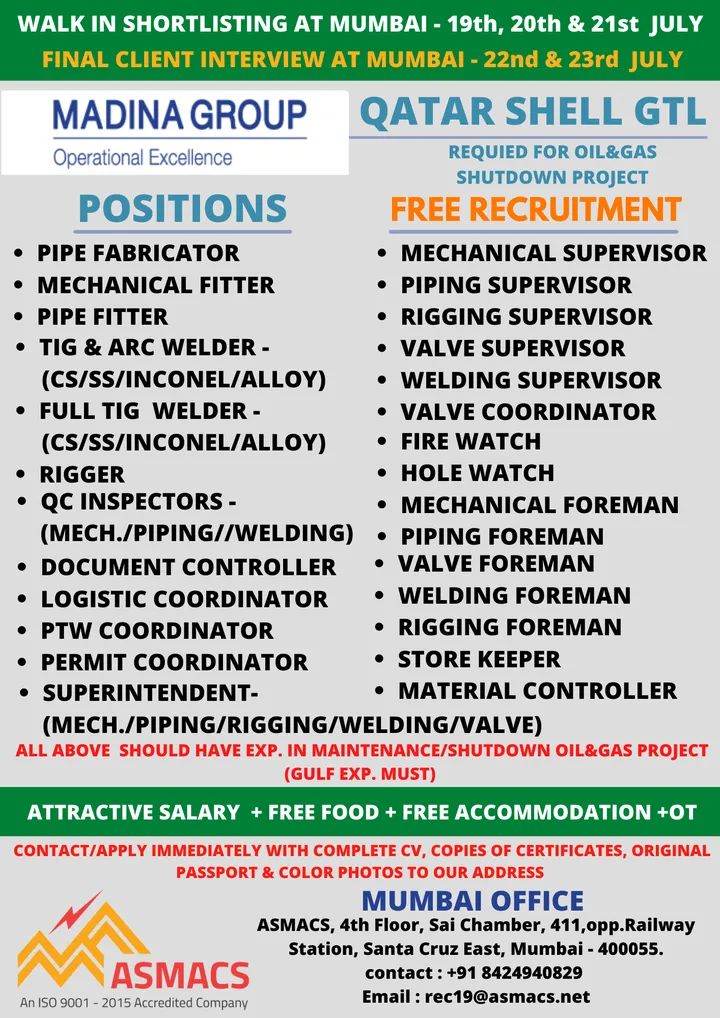 - QC Inspectors -( Mechanical/Piping//Welding)