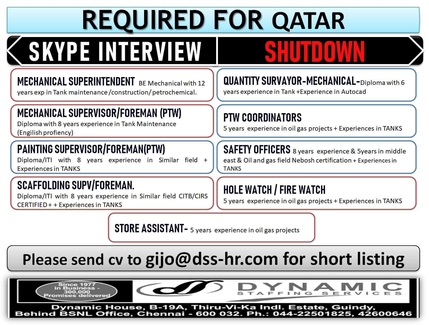 All above vacancies are shutdown vacancies and client interview will held through Skype, if shortlisted by client.