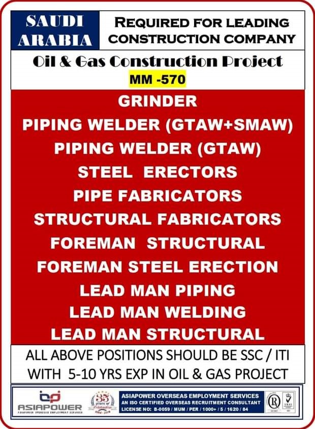- Piping Welder (GTAW+SMAW)