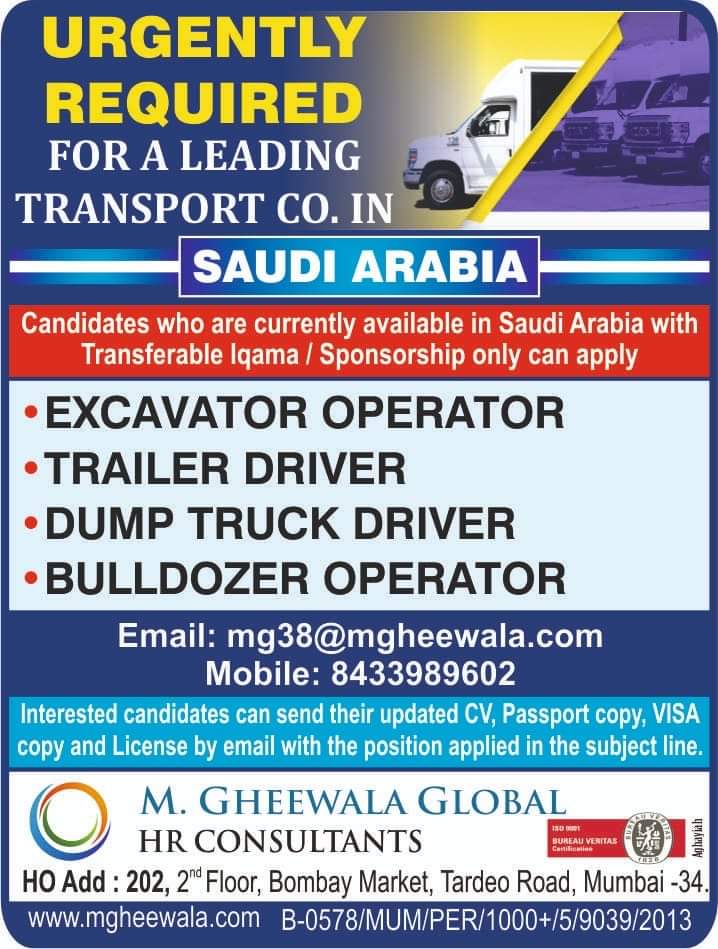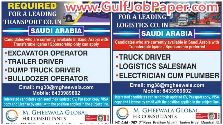 all below vacancies are for those candidates who are currently available in Saudi Arabia having transfer Iqama.