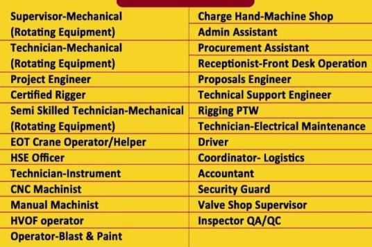 • Semi-Skilled Technician-Mechanical (Rotating Equipment)