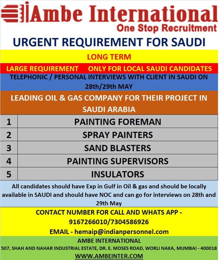 Notes: Only for those candidates who is available in Saudi Arabia right now.