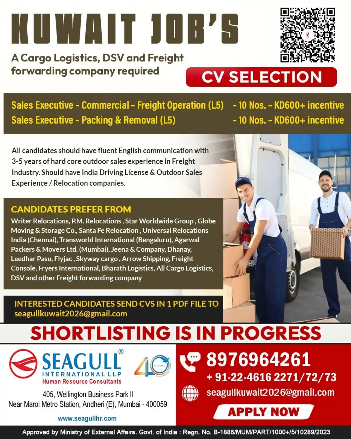 - Sales Executive – Packing & Removal (L5): 10 Positions | Salary: KD600 + Attractive Incentives