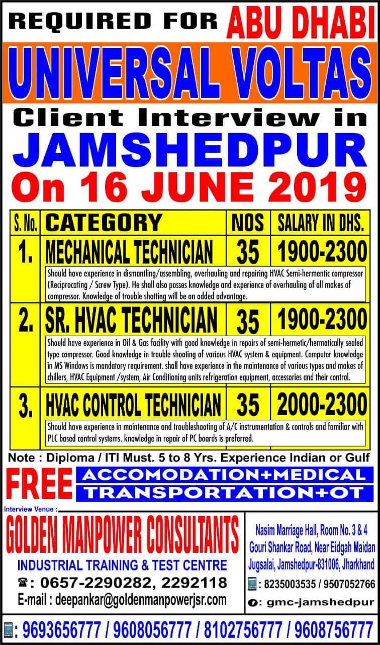 Client Interview is going to held in Tatanagar Jamshedpur in Golden Manpower Consultants.